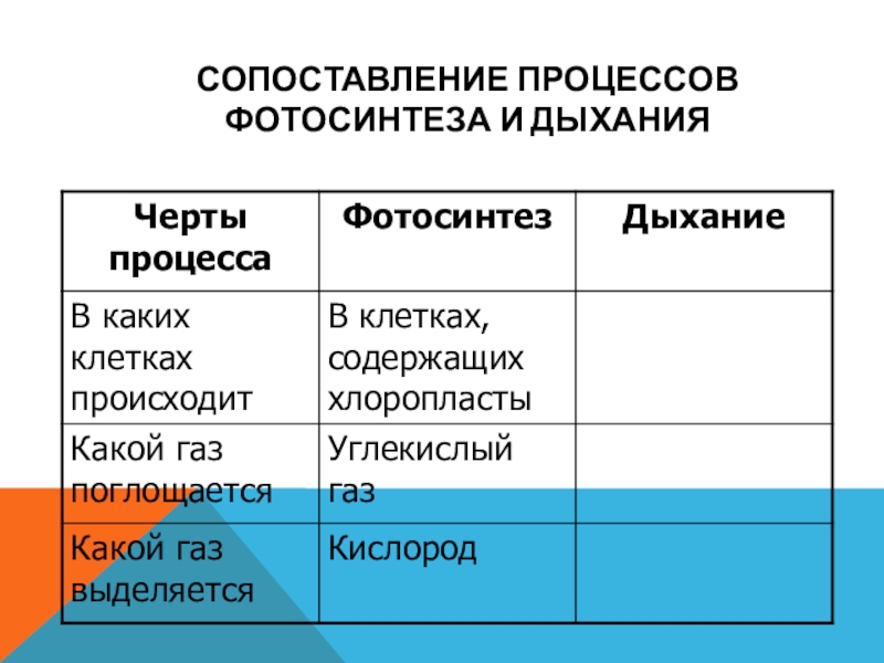 Слайд 8Сопоставление процессов фотосинтеза и дыхания