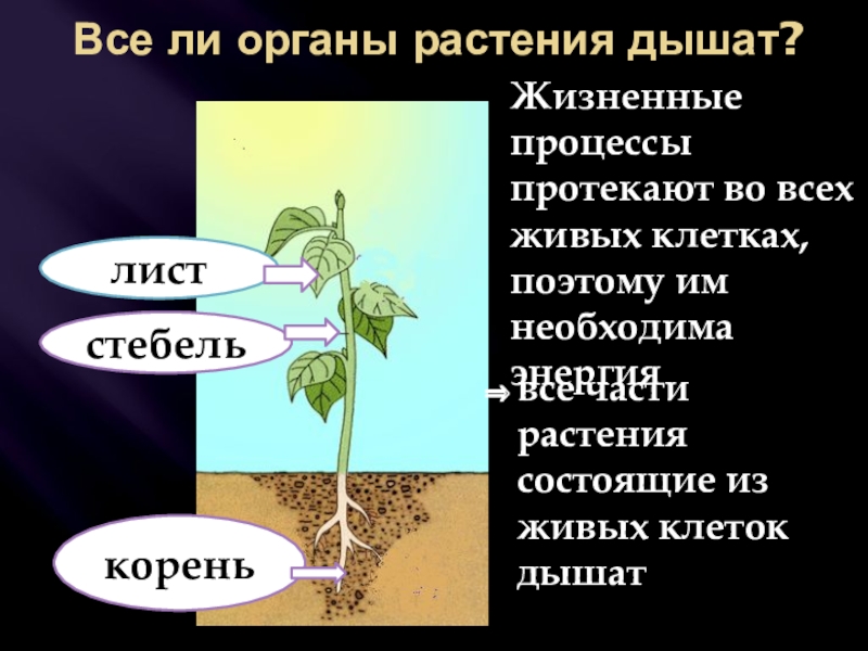 все части растения состоящие из живых клеток дышат