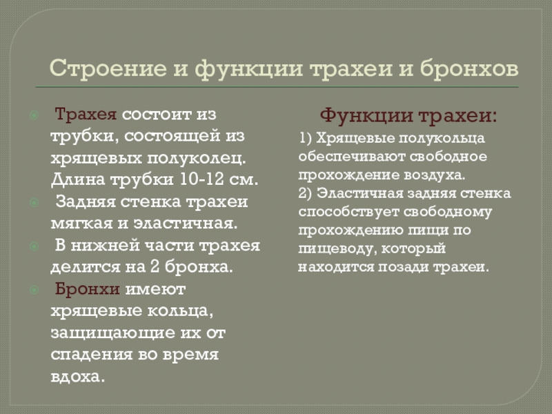 1) Хрящевые полукольца обеспечивают свободное прохождение воздуха.
