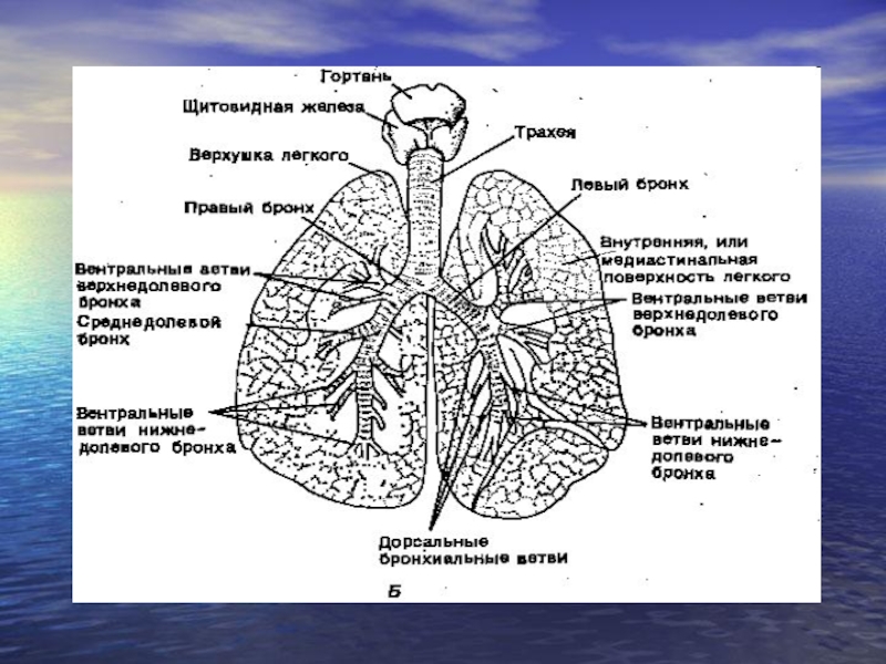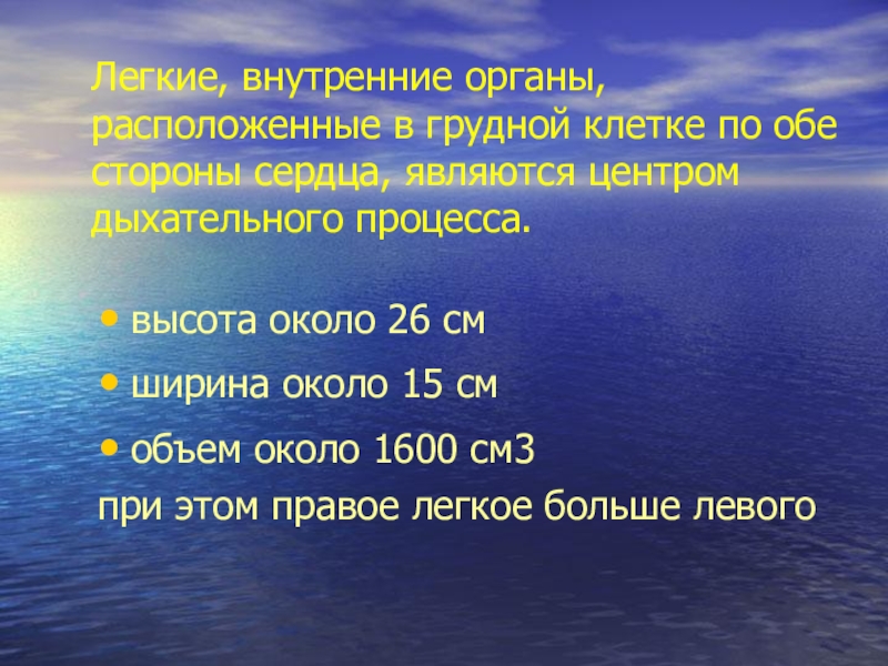 Слайд 16Легкие, внутренние органы, расположенные в грудной клетке по обе стороны сердца,