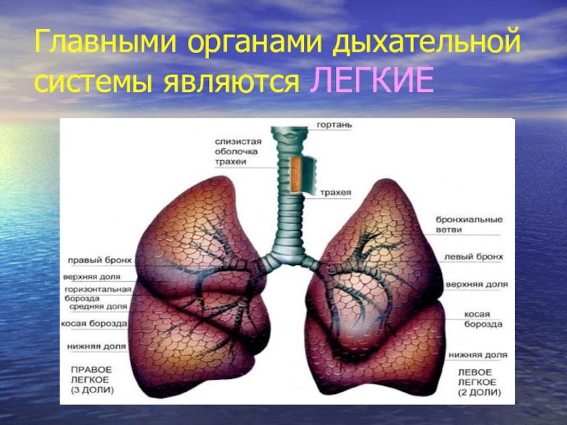 Слайд 15Главными органами дыхательной системы являются ЛЕГКИЕ