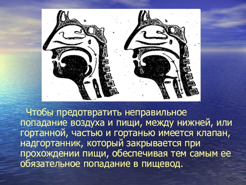 Слайд 11 Чтобы предотвратить неправильное попадание воздуха и пищи, между