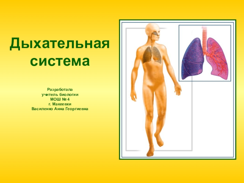 Слайд 1Дыхательная система Разработала учитель биологии МОШ № 4 г. Макеевки Василенко Анна Георгиевна