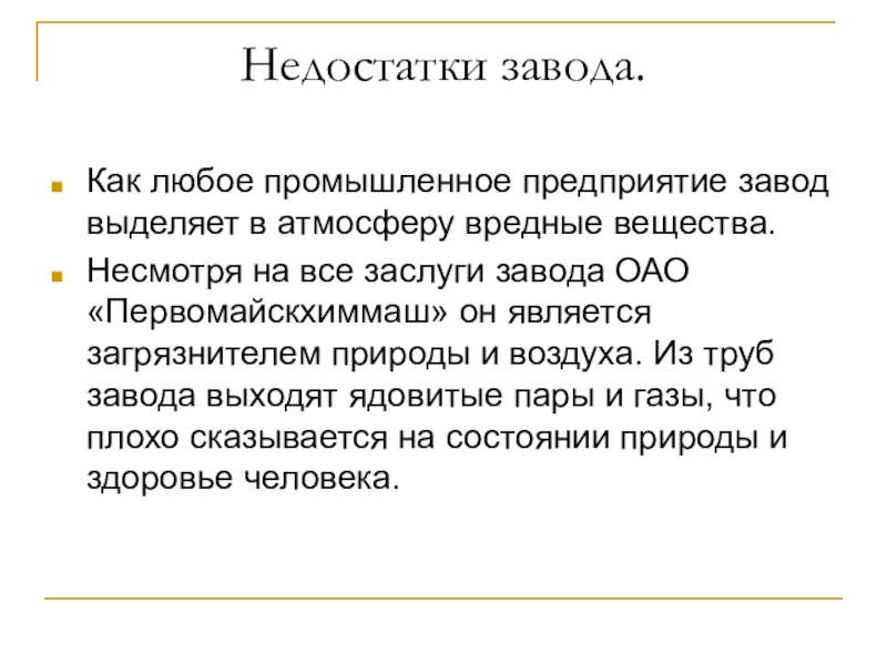 Несмотря на всю красотку п. Первомайский, в нем имеются и недостатки, связанные с проблемами окружающей среды.