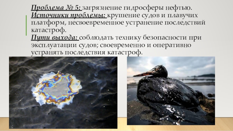 Слайд 7Проблема № 5: загрязнение гидросферы нефтью.