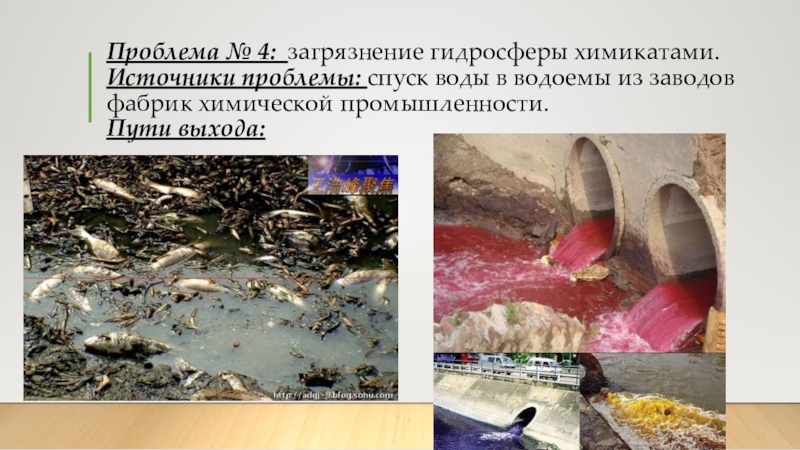 Слайд 6Проблема № 4: загрязнение гидросферы химикатами.