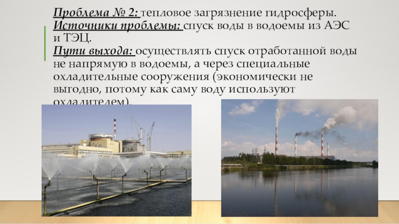 Слайд 4Проблема № 2: тепловое загрязнение гидросферы.