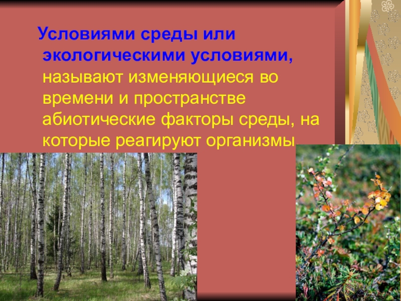 Условиями среды или экологическими условиями, называют изменяющиеся во времени и