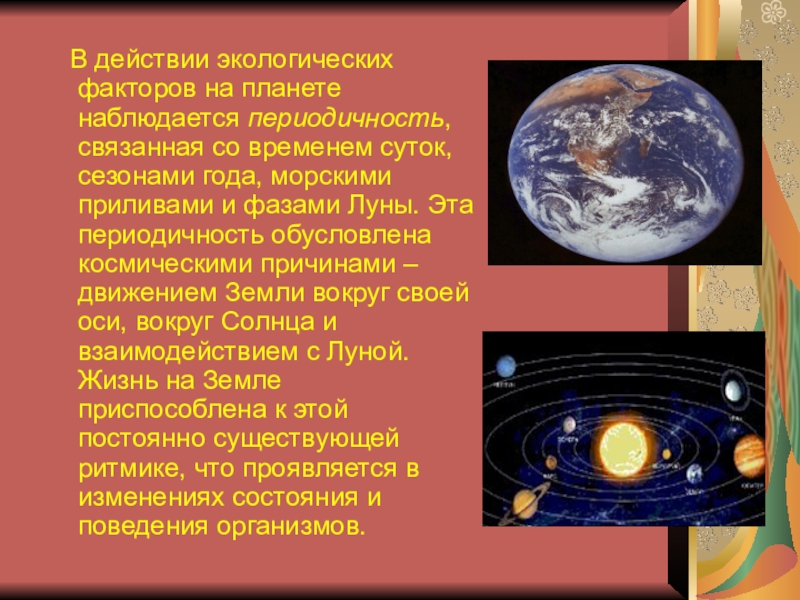 В действии экологических факторов на планете наблюдается периодичность, связанная