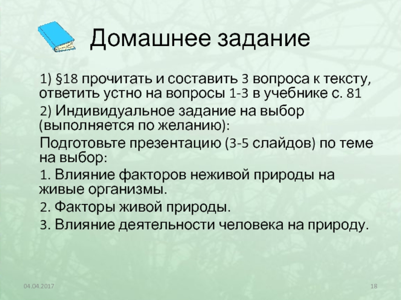 1. Факторы неживой природы- это влияние организмов друг на друга или на место, в котором они живут.