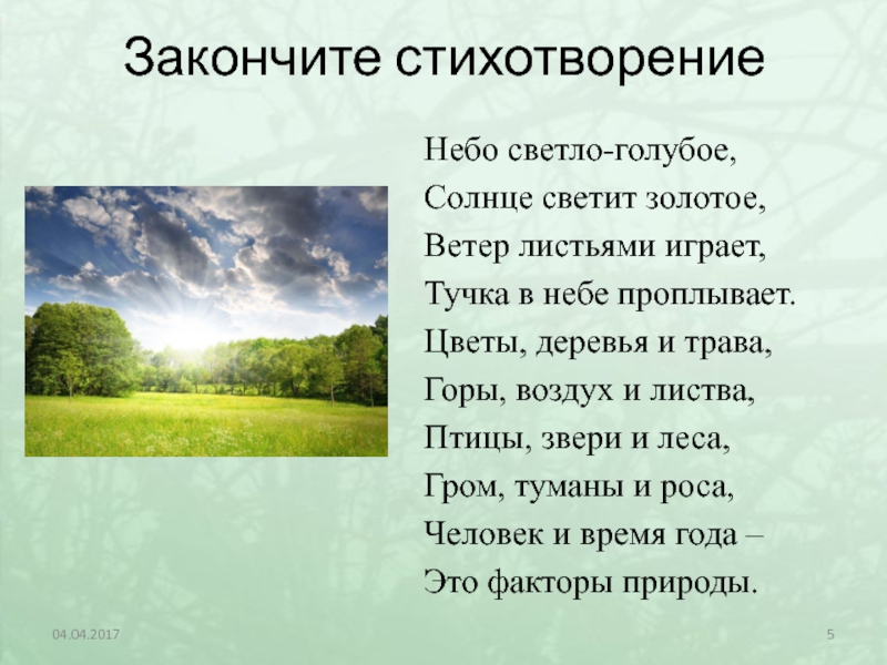 5. Получая от природы дары, человек должен возмещать её утраты.