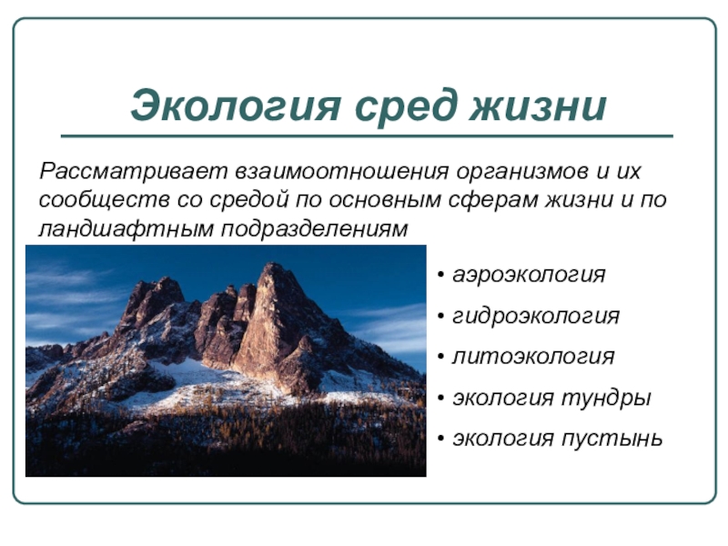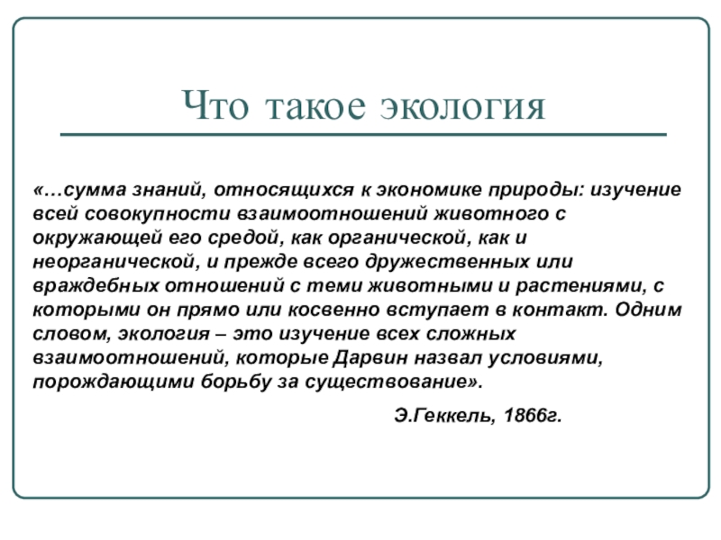 Экология – область знания, рассматривающая различные аспекты взаимоотношений организмов (в том числе и человека), их сообществ с окружающей средой. (А.В.Миронов, Преподавание экологии в школе/М.: Гуманитар. Изд. Центр ВЛАДОС, 2004.-с.221).