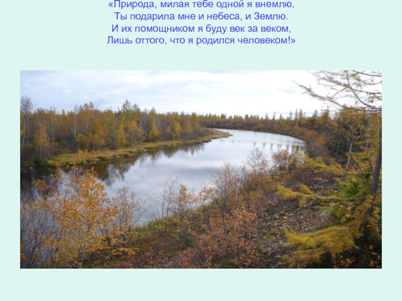 Слайд 15«Природа, милая тебе одной я внемлю, Ты подарила мне и небеса, и