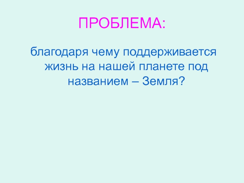 ПРОБЛЕМА: благодаря чему поддерживается жизнь на нашей планете под названием – Земля?