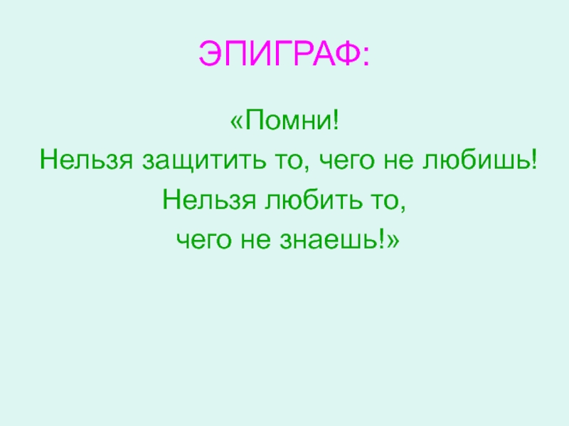 ЭПИГРАФ:«Помни! Нельзя защитить то, чего не любишь!Нельзя любить то, чего не знаешь!»