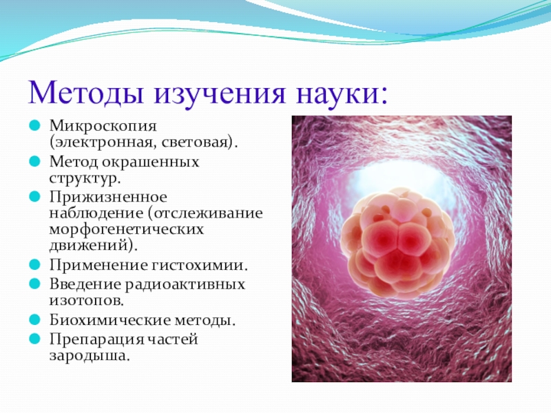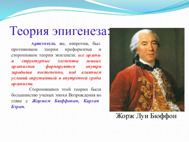 1759 г. К. Вольф описывает наличие и формирование в процессе эмбрионального развития цыпленка зародышевых листков, которые затем дают начало новым структурам и органам.