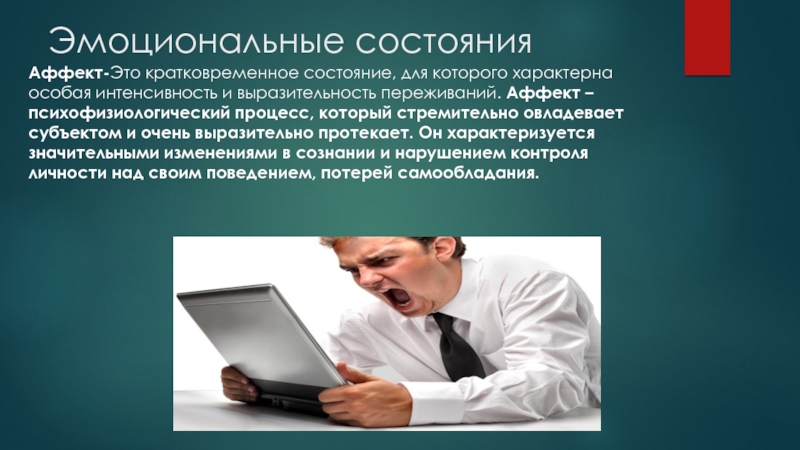 Аффект-Это кратковременное состояние, для которого характерна особая интенсивность и выразительность