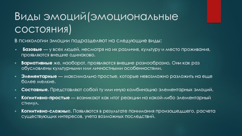 Слайд 7Виды эмоций(эмоциональные состояния)