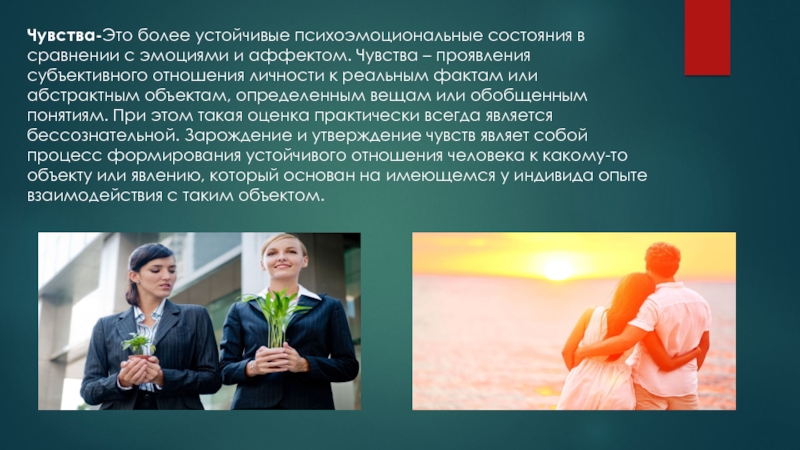 Слайд 9Чувства-Это более устойчивые психоэмоциональные состояния в сравнении с эмоциями и аффектом.