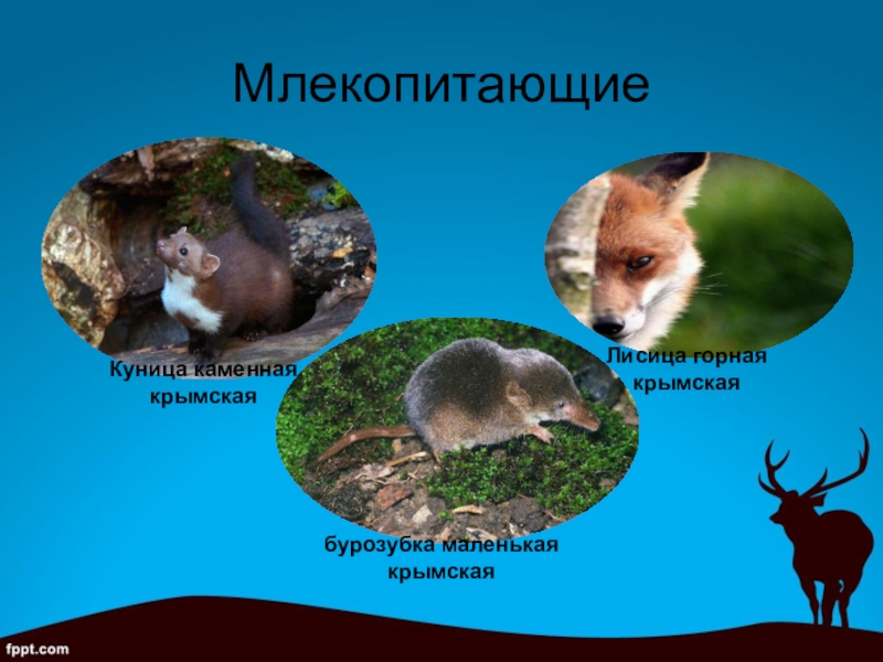 МлекопитающиеЛисица горная крымскаябурозубка маленькая крымскаяКуница каменная крымская