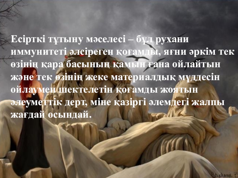 Слайд 2Есірткі тұтыну мәселесі – бұл рухани иммунитеті әлсіреген қоғамды, яғни әркім