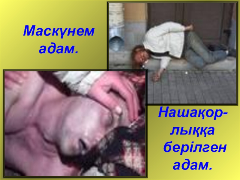 Маскүнем  адам.Нашақор-лыққа  берілген  адам.