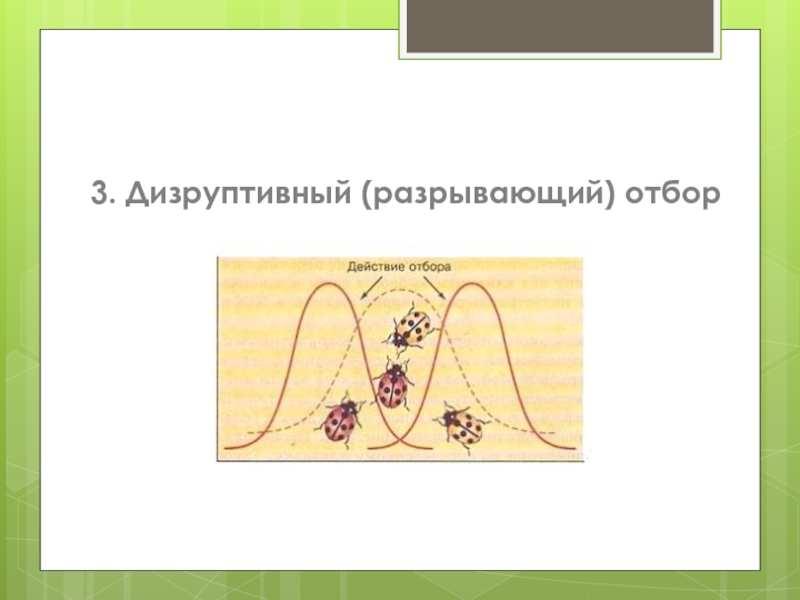 Слайд 14 Дизруптивный (разрывающий) отбор