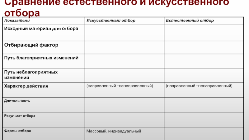 Самостоятельная работа«Сравнение естественного и искусственного отбора»