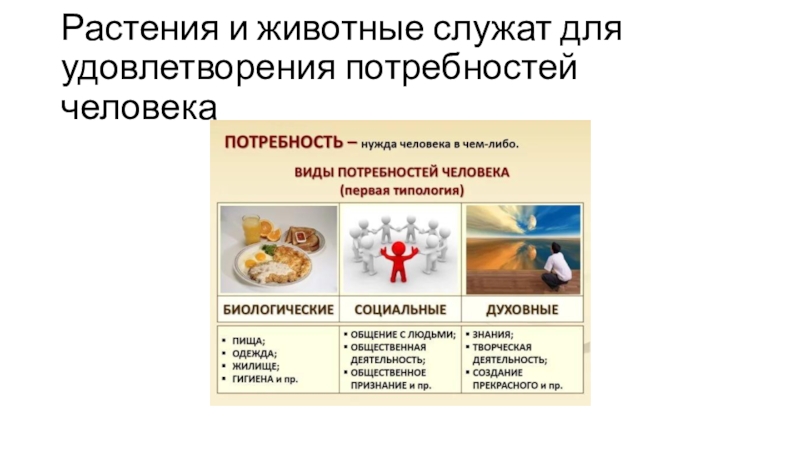 Слайд 16Растения и животные служат для удовлетворения потребностей человека