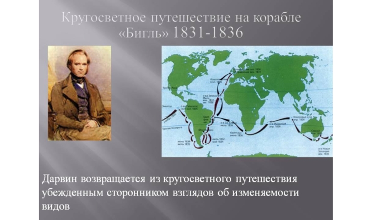 Чарлз Роберт Дарвин (1809 —1882)1859 год«Происхождение видов путём естественного отбора, или Сохранение избранных пород в борьбе за жизнь»