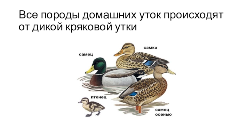 Слайд 8Все породы домашних уток происходят от дикой кряковой утки