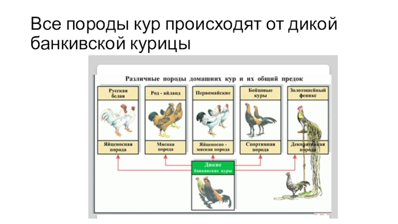 Слайд 7Все породы кур происходят от дикой банкивской курицы