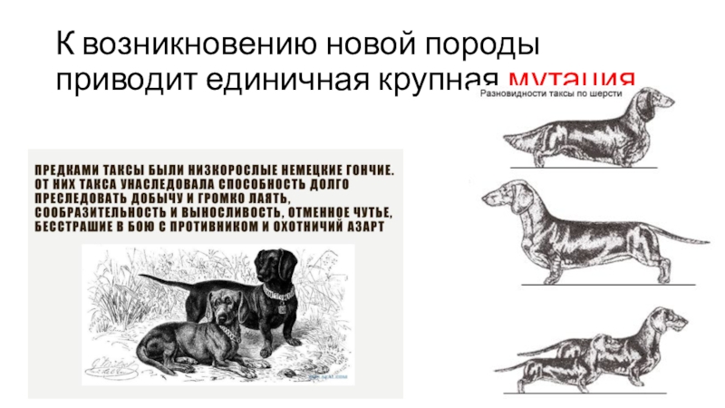 Слайд 19К возникновению новой породы приводит единичная крупная мутация