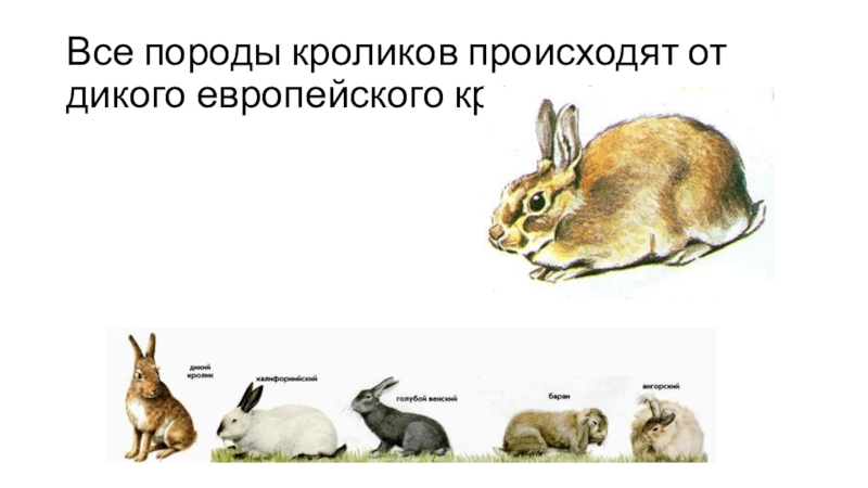 Слайд 9Все породы кроликов происходят от дикого европейского кролика