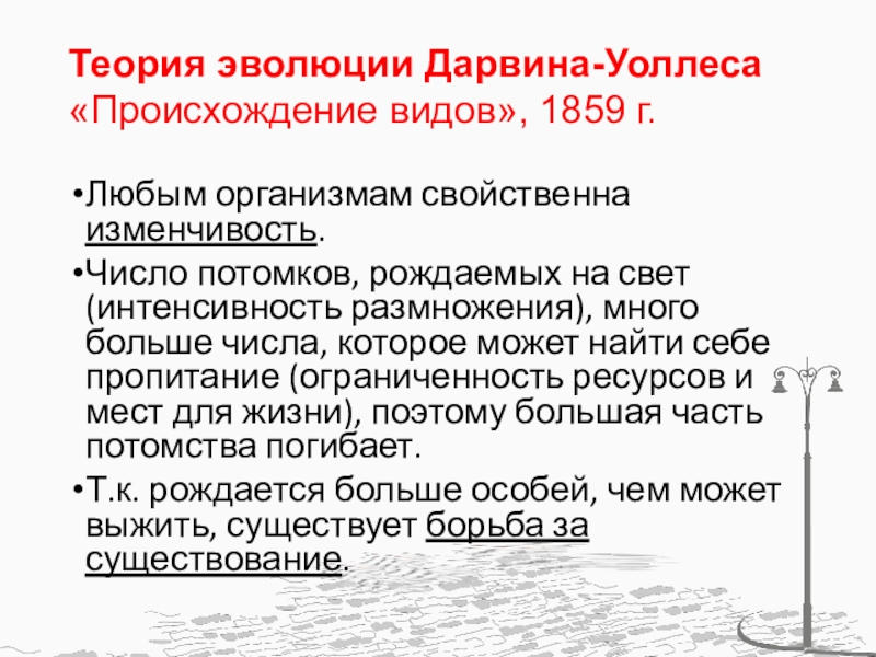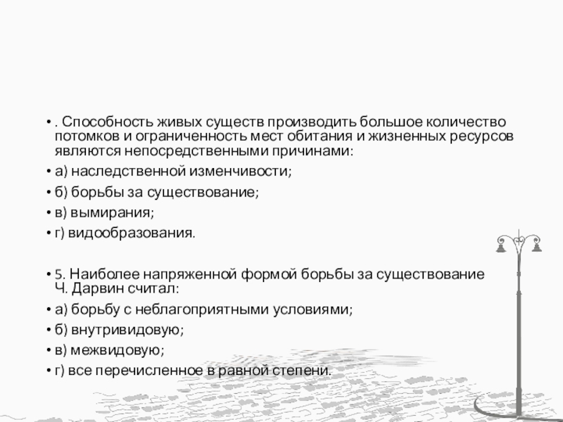 Слайд 51. Способность живых существ производить большое количество потомков и ограниченность мест