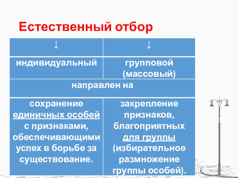Естественный отбор (ЕО) – процесс, происходящий в природе, в