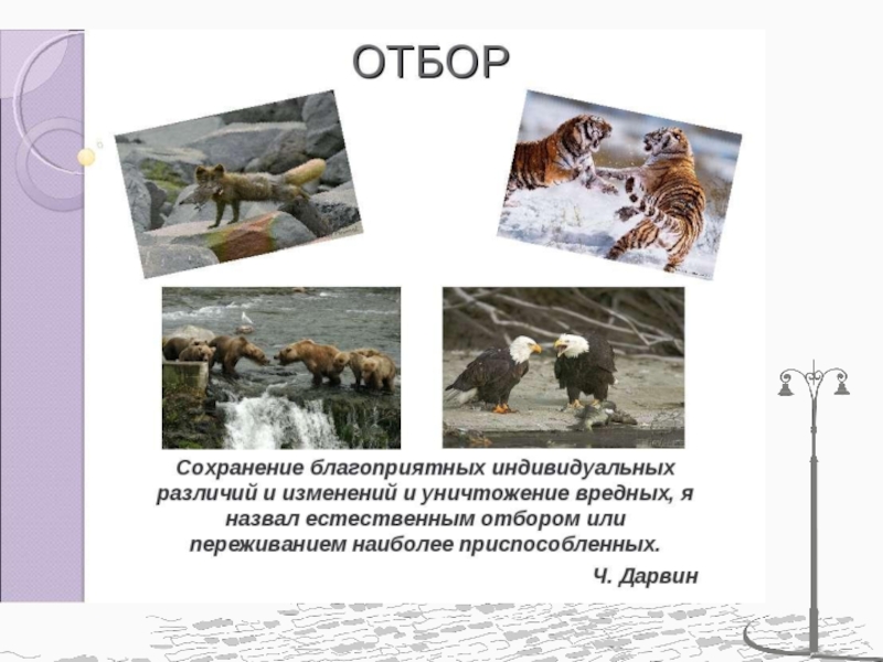 перед другими, т.е. выживают наиболее приспособленные (естественный отбор).