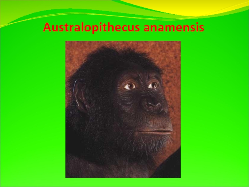 уточненным данным - между 4,17 и 4,12 млн. лет) появился Australopithecus anamensis Строение костей его ног позволяет предположить, что этот австралопитек был двуногим, однако по строению зубов и челюстей он очень схож с более поздними ископаемыми обезьянами. Их останки найдены в Кении.
