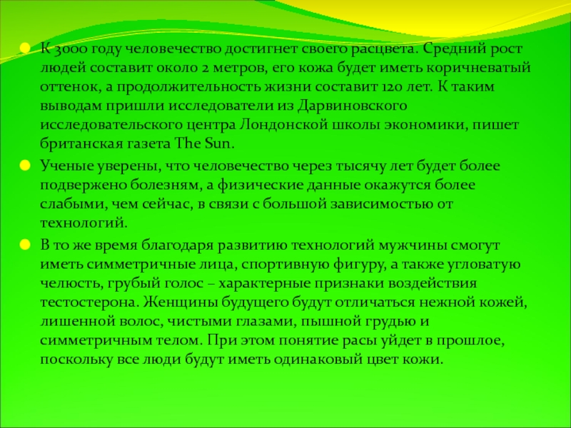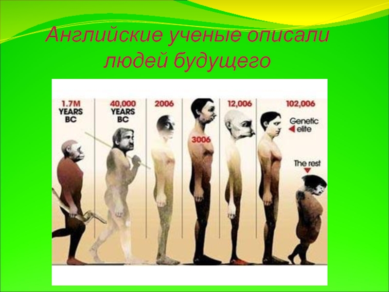 Слайд 44К 3000 году человечество достигнет своего расцвета. Средний рост людей составит