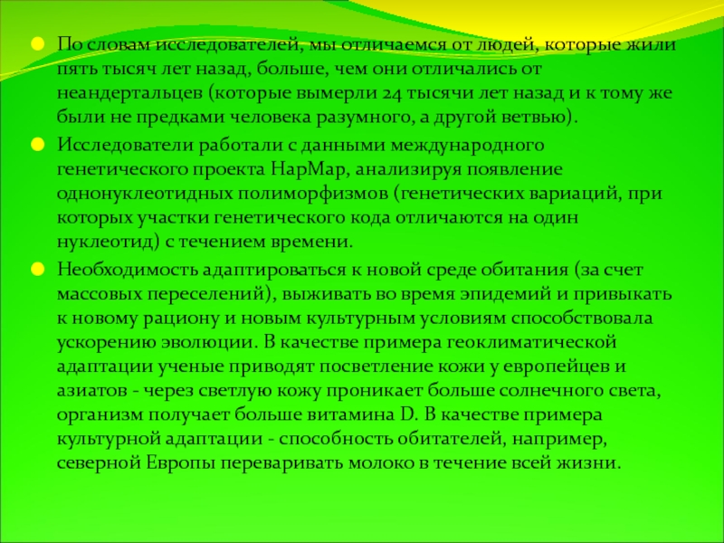 Слайд 42По словам исследователей, мы отличаемся от людей, которые жили пять тысяч