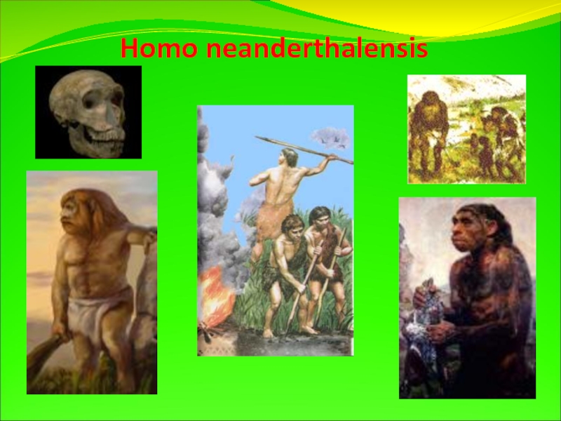 Неандертальцы отличаются от совр. человека более низким лбом, выступающим затылком, надбовными дугами. Объем мозга - как у совр. людей или даже больше. Уже умели разводить огонь. Питались почти исключительно мясом (охота), каннибализм был очень распространен. Появились первые мистические/религиозные верования: они уже хоронили своих мертвецов и украшали могилы цветами.