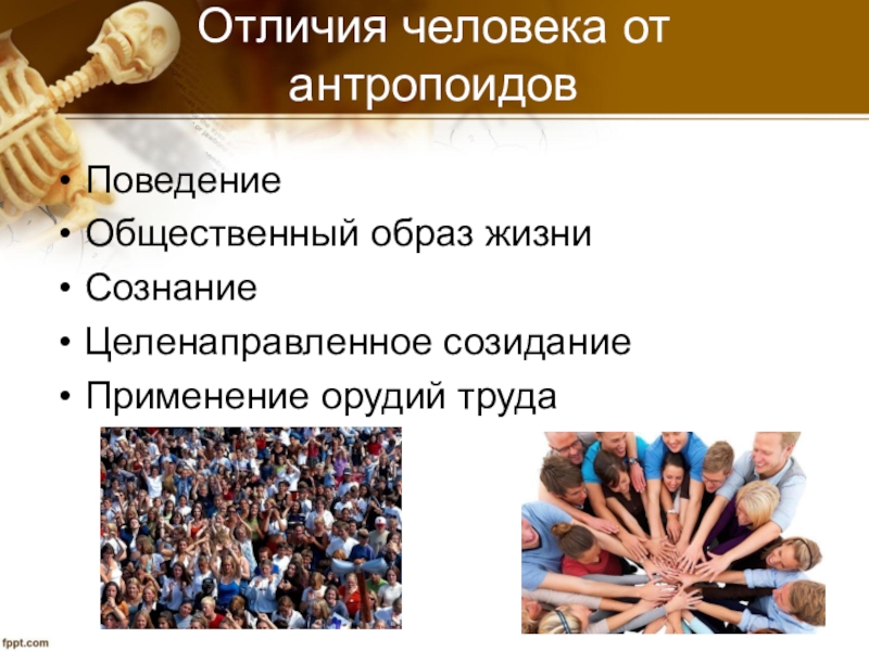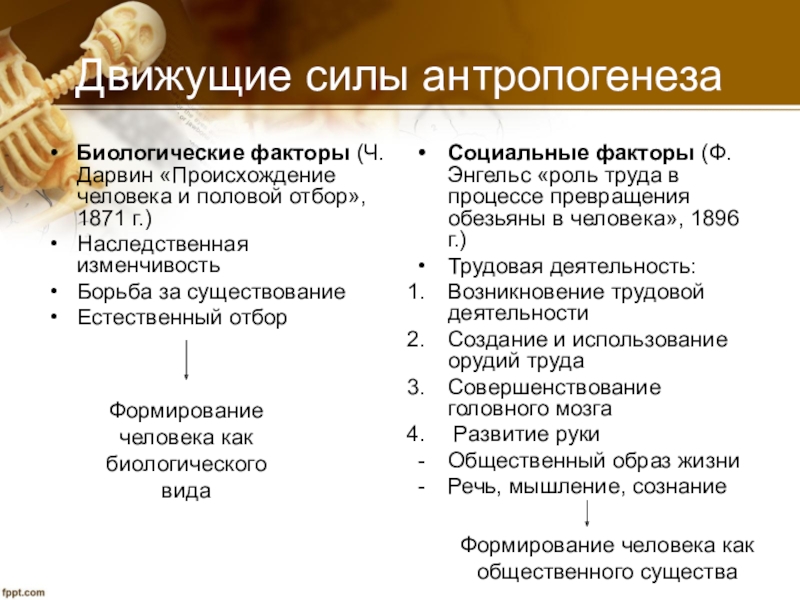 Социальные факторы (Ф.Энгельс «роль труда в процессе превращения обезьяны в человека», 1896 г.)
