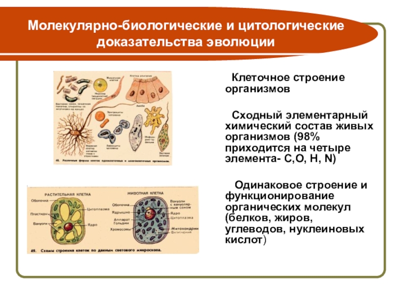 Слайд 18Молекулярно-биологические и цитологические доказательства эволюции