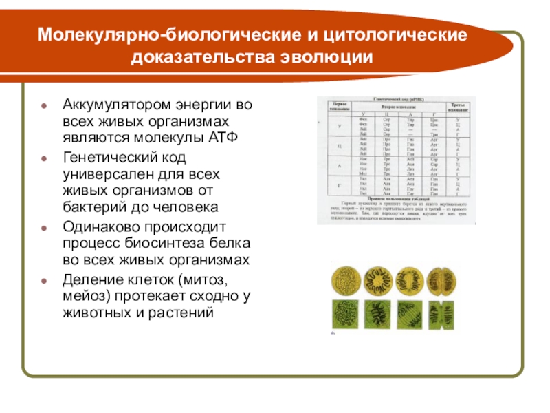 Слайд 19Молекулярно-биологические и цитологические доказательства эволюции