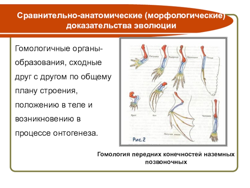 Слайд 10Сравнительно- анатомические (морфологические) доказательства эволюции