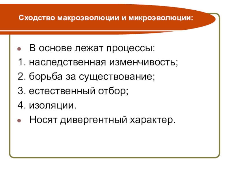 Слайд 3Сходство макроэволюции и микроэволюции: