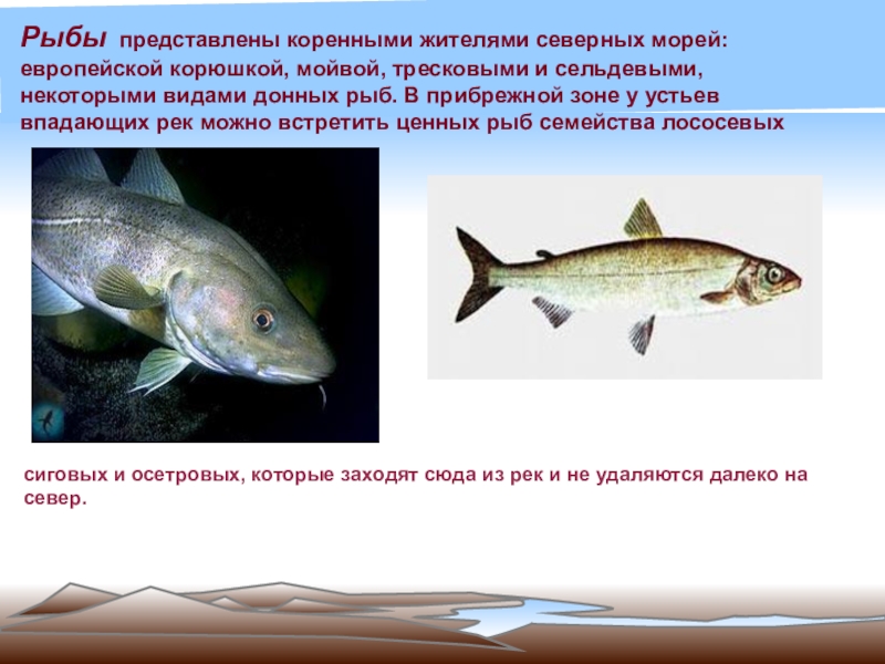 сиговых и осетровых, которые заходят сюда из рек и не удаляются далеко на север.