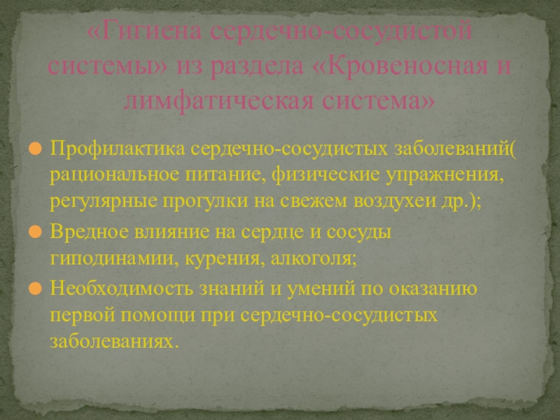 «Гигиена сердечно-сосудистой системы» из раздела «Кровеносная и лимфатическая система»