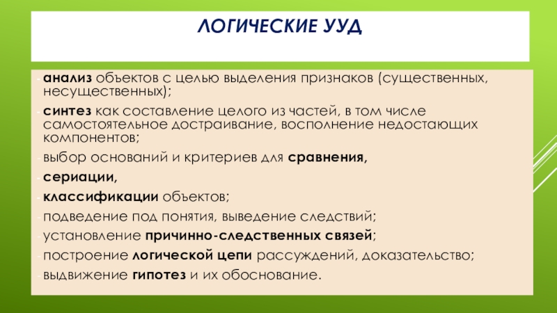 анализ объектов с целью выделения признаков (существенных, несущественных);