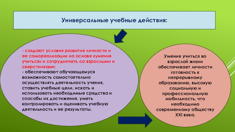 Умение учиться во взрослой жизни обеспечивает личности готовность к непрерывному образованию, высокую социальную и профессиональную мобильность, что необходимо современному обществу XXI века.